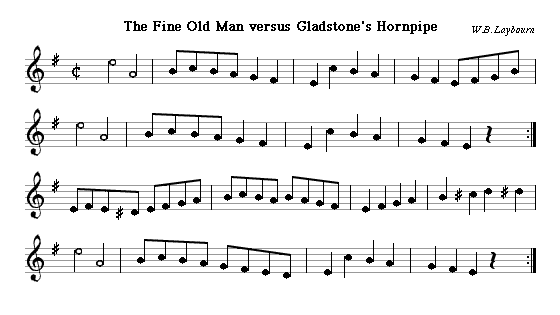 The last straw for the Tories was the spiralling costs of the war in Afghanistan, revealed in full only on the day before the poll, and Gladstone won with a solid majority. David Glen himself wrote The Right Honorable W.E. Gladstone's Welcome to Midlothian to mark this campaign. The tune may not in fact have been played at the time; the Dalkeith Advertiser of the time said he was welcomed by a string band and made no mention of a pipe band, and Glen published at least one other tune that could not have been played at the occasion he says it was, so his titles are not entirely reliable. Another piece from the election, The Fine Old Man versus Gladstone's Hornpipe, an unusual tune in a style that recalls American old-time fiddling more than anything in Scottish tradition, is by W.B. Laybourn, published by Köhler in Edinburgh in 1884.