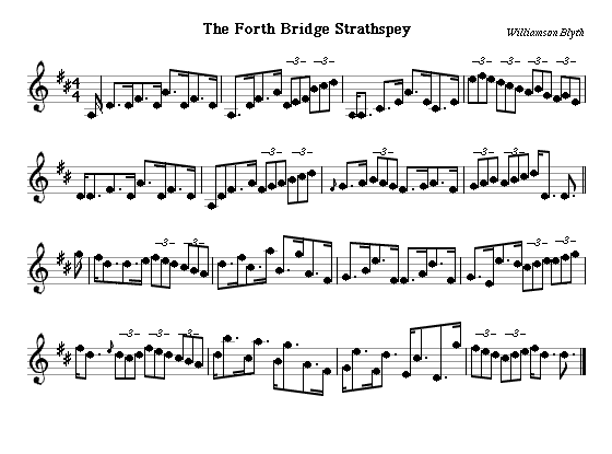 For the next generation, the railways did most to change the city. Learmonth was again involved as chairman of the Edinburgh and Glasgow Railway Company, now fighting his former allies on the Council to push the railway's interests against those of the inner city's property owners. The first plan for a rail bridge over the Forth was by Thomas Bouch, the designer of the Tay bridge, in the late 1870s. When the Tay Bridge collapsed in 1879 his scheme was abandoned. The present Forth Rail Bridge, built by the same firm that replaced the Tay Bridge, was opened in 1890. It sits on top of a small islet, which gives its name to James Mauchline's Inch Garvie march from David Glen's collection (with no explanation, and marching to or round that little rock doesn't make sense - perhaps Mauchline had the bridge construction workers in mind). The commemorative hornpipe The Forth Brig is by Scott Skinner, in his usual floridly Victorian style. The Forth Bridge strathspey and reel are by Williamson Blyth (1821-1897), an Edinburgh fiddler and a prolific violin maker said to have built 2000 instruments. According to William Honeyman, they were nearly unplayable "things shaped like violins", made to look good by superficial finish, and Blyth often disposed of them by pawning them and getting a confederate to hawk the pawn-tickets at an inflated price to people who thought they were getting a bargain. Like Scott Skinner's later reel The Spey in Spate, this plagiarizes James Hill's hornpipe of the 1840s, The Hawk. There is another fiddle tune, The Bridge of Forth, in Joshua Campbell's collection of the 18th century, which is more often played than either of these. Unless it commemorates some forgotten engineer's fantasy, the bridge it marks must be on the upper reaches of the river near Stirling. It is often known as The Bridge of Foss, and by a surreal misprint in Donald MacPhee's pipe tune collection of 1870, The Bridge of Floss. There is one tune for the Forth Road Bridge of the early 1960s, a pipe march Crossing the New Forth Bridge by Jimmy Shand.