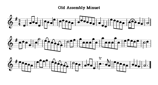 These assemblies steadily multiplied, culminating in those held at the grand Assembly Rooms in George Street, but the basic character of the dancing changed little in the second half of the eighteenth century. Many Scottish dance assemblies had tunes dedicated to them; Leith Assembly Rooms, by "A.G." (Andrew Gow?), is from a music sheet of the early 19th century.