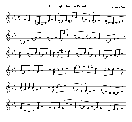 Edinburgh Theatre Royal is another Porteous tune, a jig in an Irish style; being in E flat, it's probably intended for the harp or piano.