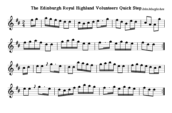 The name "Volunteers" was applied to a series of different forces. The first was a short-lived regiment of 1000 men raised in 1778 in response to the American War of Independence, which seems to have done nothing at all except parading and spending thousands of pounds of public, guild and private money while at the same time underpaying its ordinary soldiers so badly that many of their wives and families were left destitute. The dramatic reel of 1788 by the Glasgow composer Joshua Campbell, The Royal Edinburgh Volunteers, must be dedicated to this force. It's very similar both to Lord Kelly's Reel (which is probably its original) and The New Cross Well.